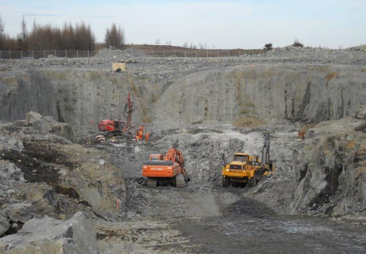 Forage/dynamitage, concassage, location de main-d’œuvre qualifiée et préparation pour la mise en place des infrastructures.